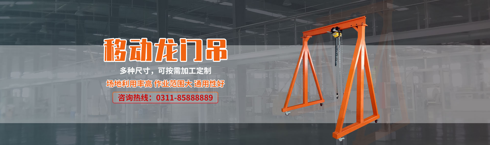 成華牌龍門吊架在工業(yè)生產(chǎn)車間更具靈活機(jī)動(dòng)、適應(yīng)性廣等特點(diǎn),在工業(yè)裝備的搬運(yùn)挪移中是高效自動(dòng)生產(chǎn)線上必備的單獨(dú)應(yīng)急吊裝設(shè)備,有了它能確保生產(chǎn)線暢通無阻。